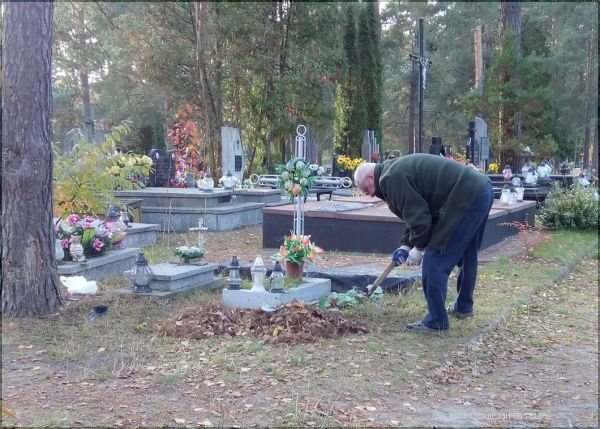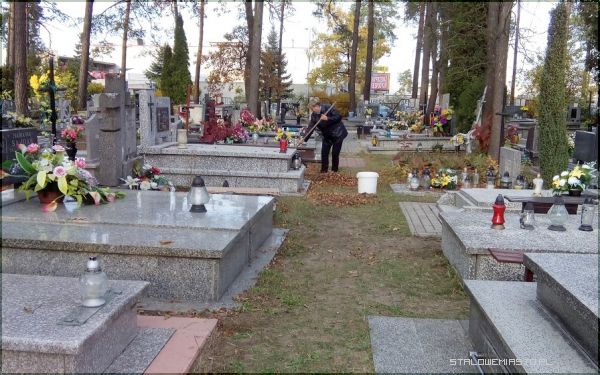 Zarówno na cmentarzu w Stalowej Woli, jak i Rozwadowie spory ruch. Rozpoczęło się wielkie przedświąteczne sprzątanie. Idący ludzie z wiatrami, miotłami, szmatkami i różnego rodzaju pastami do polerowania pomników, płynami do nabłyszczania, to nic dziwnego. Śmietniki zapełniają się, ale za to zrobiło się czyściutko między alejkami.