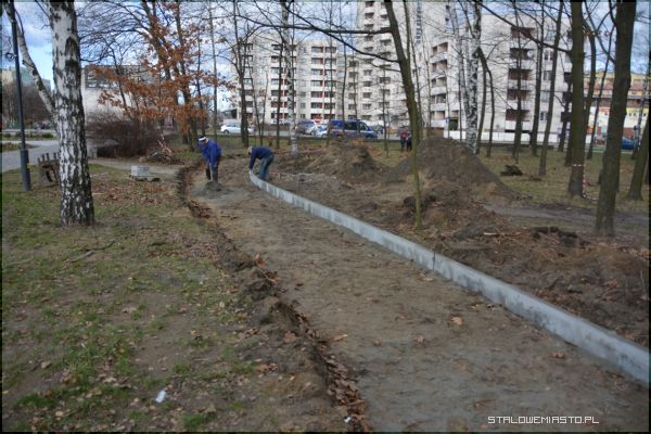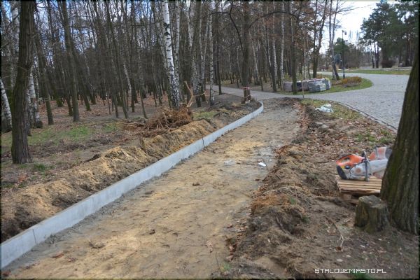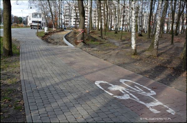 W tym tygodniu rozpoczęły się prace przy budowie ścieżki rowerowej, która niefortunnie „urywa” się przy deptaku. Trasa dla rowerzystów będzie biegła przez lasek, aż do kamiennego murku oddzielającego chodnik od parku. Murek ten zostanie rozbity, by rowerzyści mogli dotrzeć bez schodzenia z rowerów do ścieżki rowerowej biegnącej wzdłuż ulicy Popiełuszki.