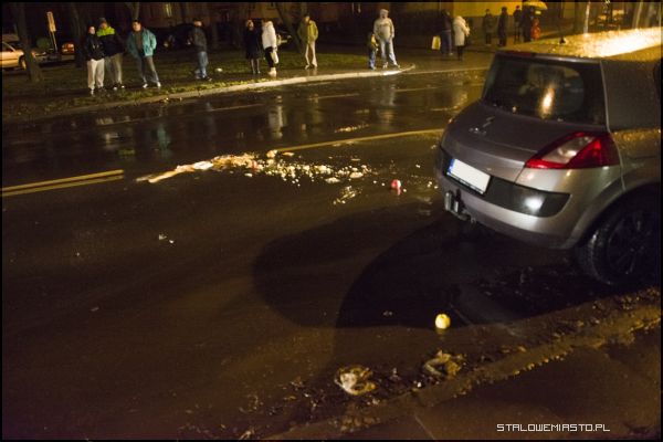 Poszkodowana została przeciągnięta na masce samochodu kilka metrów dalej. Na ulicy pozostały części jej garderoby. Do przyjazdu karetki leżała, prawdopodobnie nieprzytomna, na jezdni.