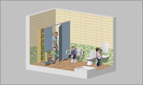 W budynku będzie ogólnodostępne WC i WC dla niepełnosprawnych oraz łazienka dla personelu, a także szatnia i łazienka dla personelu kuchennego.