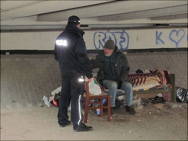 Podczas patrolu na terenie osiedla "Centralne" funkcjonariusze ujawnili bezdomnego mężczyznę. Pomimo oferowanej pomocy i poinformowaniu o możliwości skorzystania z miejsca w schronisku, 60-letni bezdomny oświadczył, że nie potrzebna mu żadna pomoc.