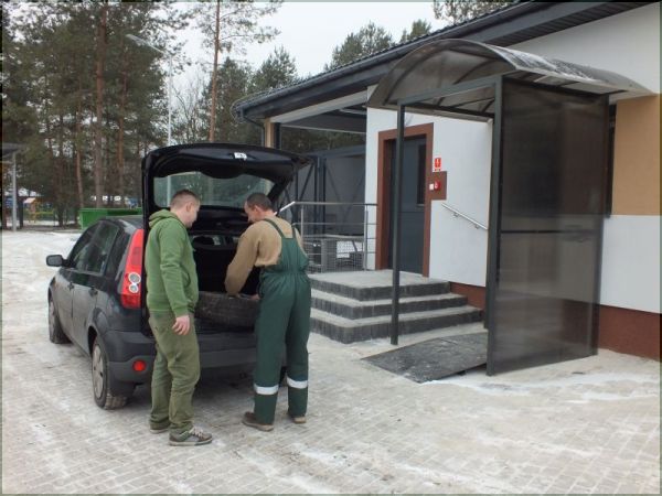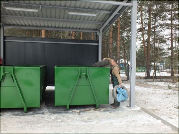 Fot.3. Pracownik MZK wyrzuca zużyte opony do specjalnego kontenera.