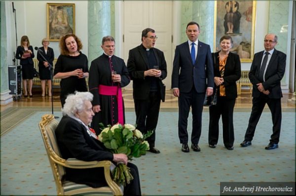 - Bardzo radosny, a jednocześnie wzruszający moment. Bardzo dziękuję Pani kapitan, że zechciała przybyć do Pałacu Prezydenckiego, żeby odebrać ten order, nie tyle ode mnie, ile od Rzeczypospolitej Polskiej- powiedział prezydent. - To jest order dla Pani, za Pani wspaniałe życie dla Polski i dla Polaków, ale także dla Pani rodziny – zwrócił się do odznaczonej.