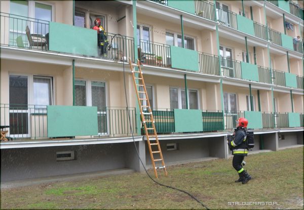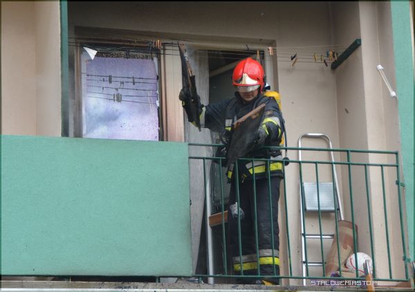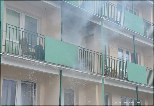 Około godziny 11:40 zauważono ogień wydobywający się z jednego ze stalowowolskich balkonów.