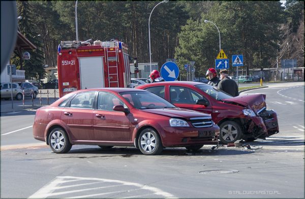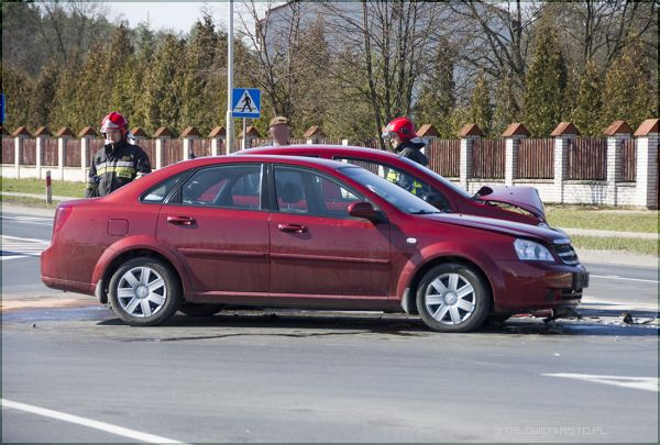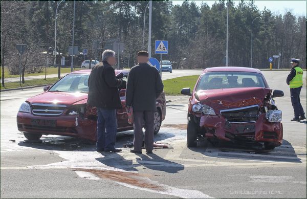 Na skutek zderzenia dwóch aut marki chevrolet doszło do wycieku płynów (oleju). Wypadek miał miejsce na skrzyżowaniu ulic Komisji Edukacji Narodowej i Bojanowskiej. Ze wstępnych ustaleń wynika, że kierujący wyjeżdżając z podporządkowanej nie zachował środków ostrożności i nie zatrzymał się przed KEN zajeżdżając drogę prawidłowo poruszającemu się ulicą od strony Tarnobrzega kierowcy.