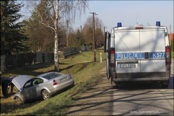 Kierująca VW golfem 42- letnia kobieta wyjeżdżała autem ze swojej posesji tyłem. Nie zachowując środków ostrożności wtargnęła na jezdnię. W tym samym czasie ulicą Sandomierską poruszał się swoim samochodem inny użytkownik ruchu, 46- letni mężczyzna. Kobieta wjechała w niego z taką siłą, że samochód poszkodowanego wylądował w przydrożnym rowie.