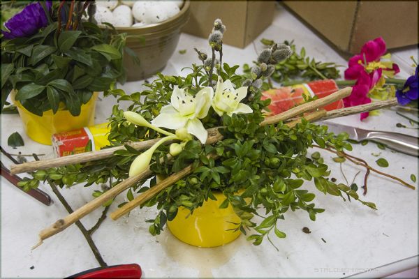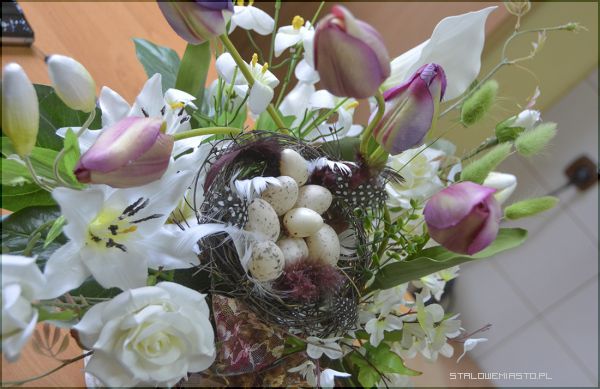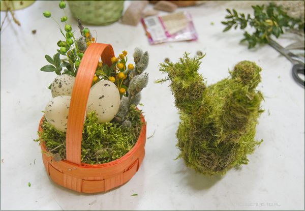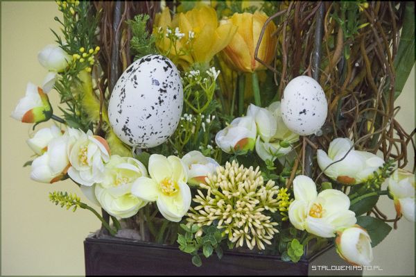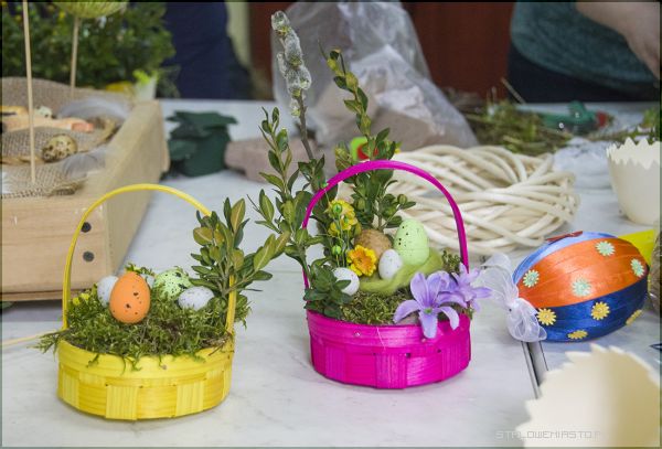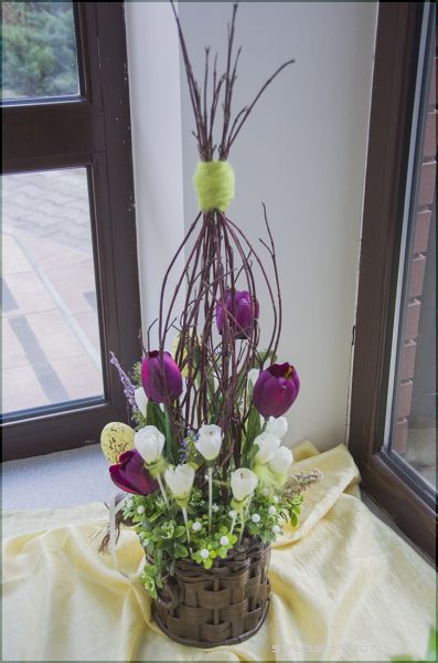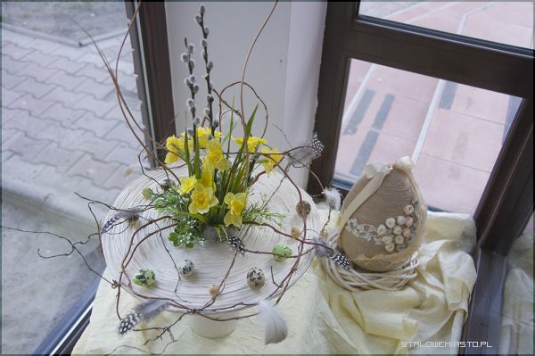 - W tym okresie pojawiają się pierwsze wiosenne kwiaty, głównie cebulowe: tulipany, narcyzy, hiacynty. Wykonuje się stroiki wielkanocne, wianki na drzwi. Wykorzystuje się bukszpan, bazie, pędy wierzby i zielone gałązki. Do stroików wykorzystujemy materiał roślinny i nie roślinny łącząc ze sobą różnymi technikami. Powstają w ten sposób ciekawe i różnorodne kompozycje wiosenne- mówi Lucyna Lisowska, nauczyciel florystyki.