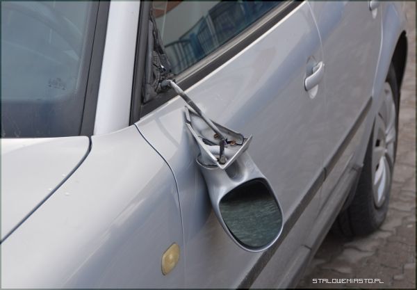 Na Jana Pawła II obok dawnej szkoły nr 10 też parę lusterek się posypało