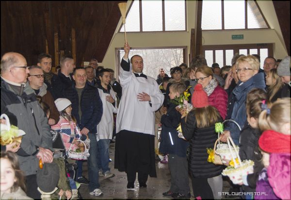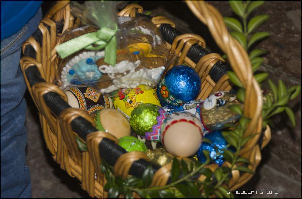 Jak odbywają się święcenia w stalowowolskich kościołach? Głównie co godzinę, czasem co pół godziny, od rana do około 13:00- 14:00. W koszyczkach tradycyjnie znajdują się jajka, kiełbasa, szynka, cukrowe baranki, chleb, wypieki, chrzan, sól i pieprz oraz cała gama słodyczy, czekoladowych jaj, kurczaków i zajączków, jak również plastikowych, puchatych i drewnianych wyrobów rękodzielniczych, które nijak się mają do świątecznego spożywania pokarmów…