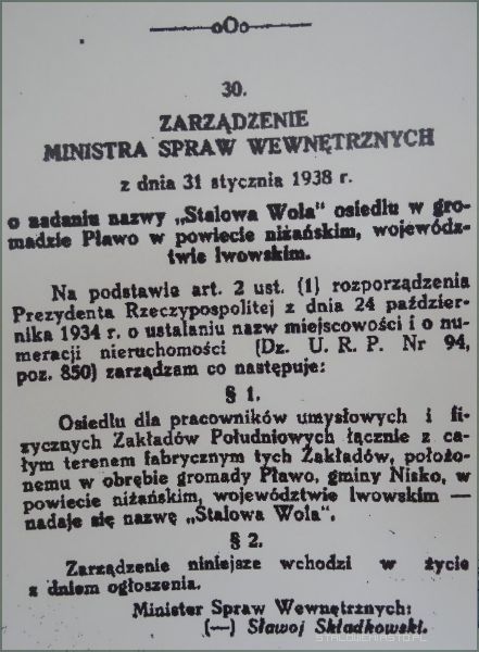 Stalowa Wola powstawała w rekordowo krótkim czasie. Pierwszą sosnę wycięto 20 marca 1937 roku a dwa lata później były zbudowane dwa nowoczesne zakłady – huta i elektrownia, rozpoczęto także budowę huty aluminium. Oprócz tego zbudowano przyfabryczne osiedle dla pracowników Zakładów Południowych (taką nazwę nosiła dzisiejsza Huta Stalowa Wola).