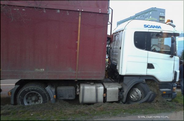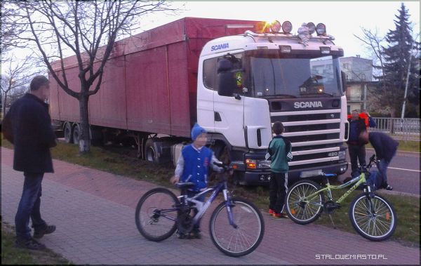 Skończyło się na strachu i kilku godzinach postoju. Wokół pojazdu zgromadził się spory tłum gapiów. Opona została wymieniona i Scania pomknęła w dalszą trasę...