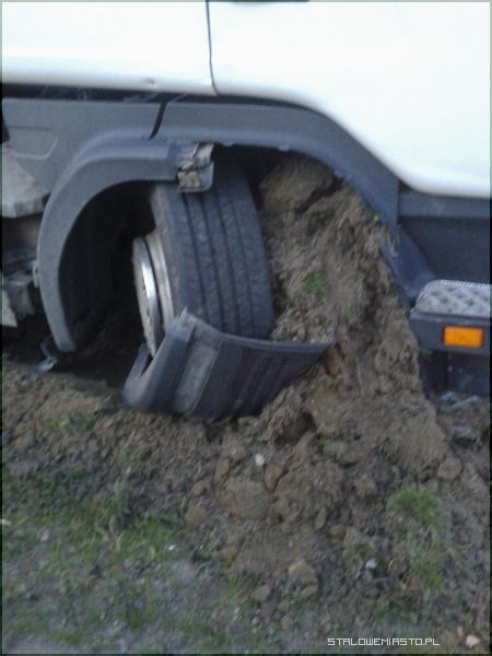 "Pytanko" popatrz uważnie. Pęknięta jest ta opona co jej nie widać spod ziemi.