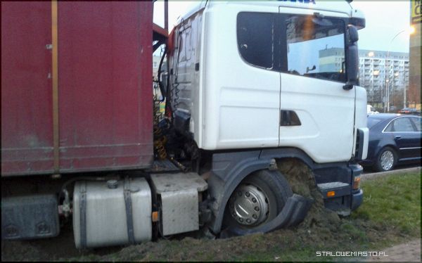 O wielkim szczęściu może mówić kierowca Scanii poruszający się Al. Jana Pawła II, któremu podczas jazdy pękła jedna z opon...