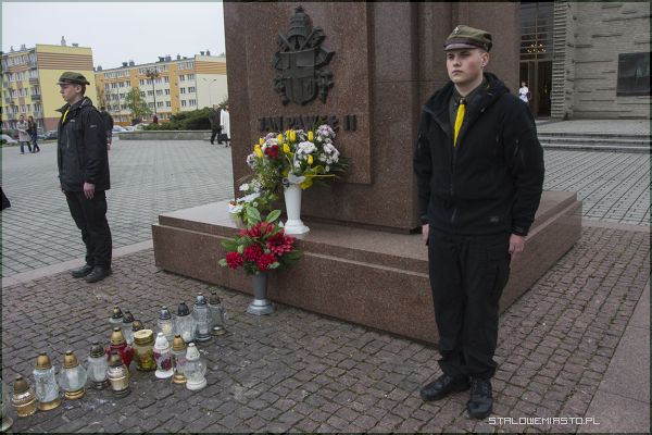 Po nabożeństwie zostały złożone wiązanki kwiatów pod krzyżem przed konkatedrą, zgromadzeni modlili się również przed pomnikiem świętego Jana Pawła II.