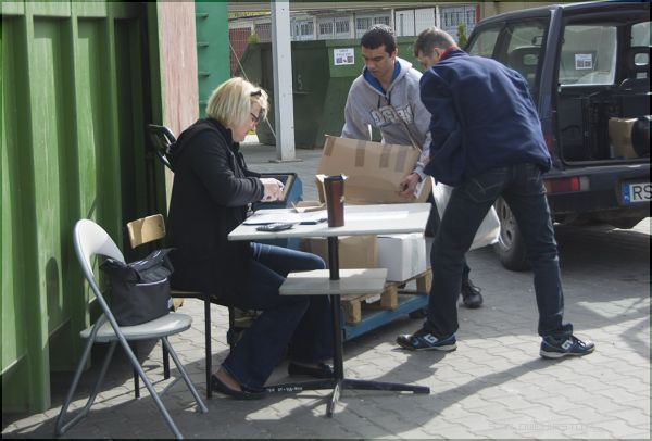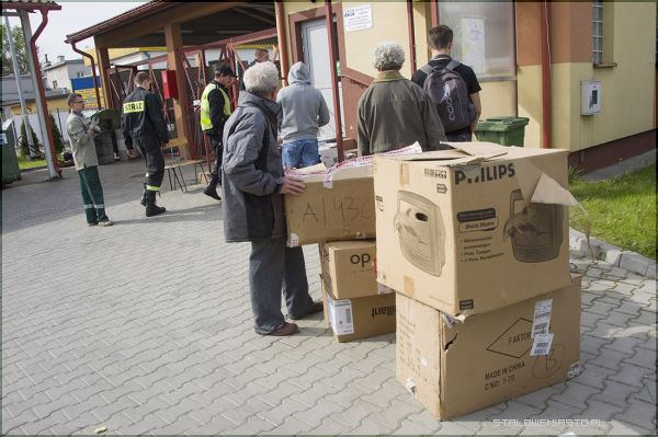 W kolejce stali głównie działkowcy, a także posiadacze własnych domów. W przenoszeniu papieru do kontenerów pomagali kolejny rok z rzędu strażacy ochotnicy. Po oddaniu makulatury osoby biorące udział w akcji otrzymywały specjalny kupon, który wymieniało się na sadzonki. W tym celu trzeba było się udać na parking przed budynkiem Starostwa Powiatowego. Tutaj bardzo pomocni byli harcerze.