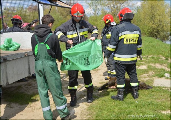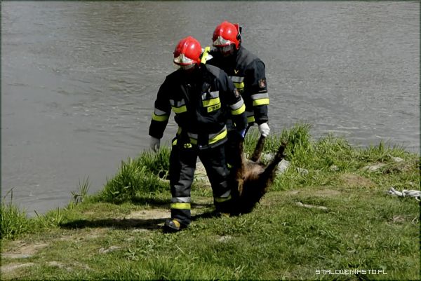 Pani Angelika spacerowała ze swoim psem wzdłuż Sanu. W pewnym momencie jej psiak wyczuł, że coś znajduje się w rzece. I faktycznie z wody wystawały jakby włosy. Stalowowolanka w pierwszej chwili, patrząc z daleka, pomyślała, że mogą to być zwłoki człowieka, ale gdy podeszła bliżej, okazało się, że w wodzie leży martwy dzik. Pani Angelika natychmiast zawiadomiła strażaków.