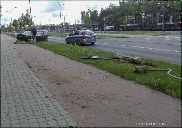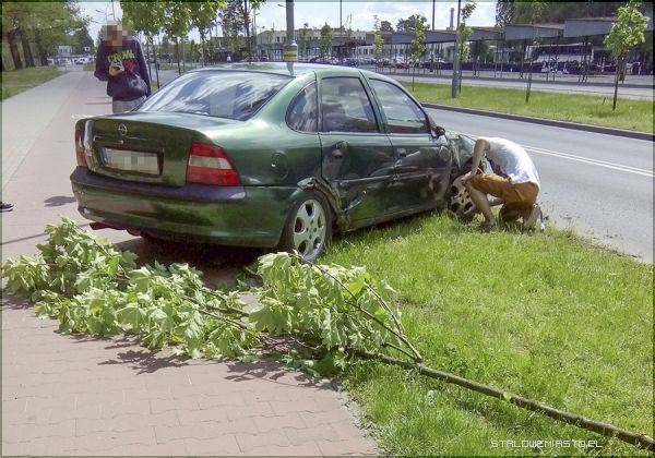 Szkoda drzewka. Taki czyn mógłby się kwalifikować jako nielegalna wycinka czyli kierowca powinien mieć dodatkowy mandat.