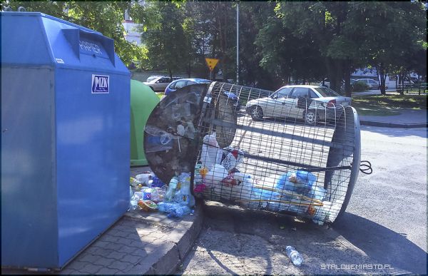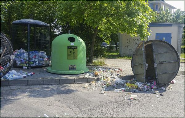 Do zdarzenia doszło w sobotę około południa. Ktoś szedł rano między blokami i „wyżywał się” na pojemnikach służących do segregacji odpadów. Osoba lub osoby miały w sobie tyle agresji, że poprzewracały kosze, z których wysypały się plastikowe śmieci. Część z nich spadła na ulicę.