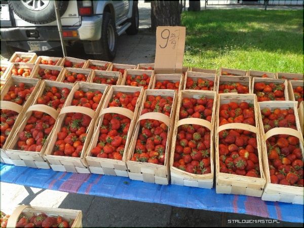 W warzywniakach truskawek niewiele, w sklepach w zasadzie wcale. Za to na targu owoców jest bardzo dużo. Truskawki kupić można od kilkunastu co najmniej sprzedawców. Ceny? Bardzo wysokie. W piątek, 27 maja 2016 za kilogram trzeba było zapłacić 9, a nawet 10 zł. Kupujących niewiele, ale są. Biorą po kilogram, niektórzy po dwa przychodząc na targ z własnym koszyczkiem. Jaki smak? Sprzedawcy zgodnie twierdzą: pyszne, słodkie, pachnące, bo to już nasze. Zresztą na wielu karteczkach z ceną widnieje napis informujący, że towar krajowy, nie jakiś tam zagraniczny. A co do smaku to owszem, jak mówią konsumenci, może być. Z tą słodkością nie ma co przesadzać. Truskawki dojrzewały głównie przykryte folią (okryte specjalnymi rękawami), więc nie są aż tak aromatyczne jakbyśmy tego sobie życzyli. Za kilka dni zbiory będą wyłącznie z pola i o ile słońce dopisze, owoców będzie w bród.