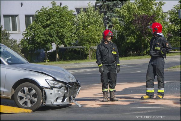 Zderzeniu uległy dwa pojazdy: Audi A6 (na staszowskich numerach rejestracyjnych) i Peugeot 307 (Świętochłowice, województwo śląskie). Obydwa samochody zostały odholowane. Jeden pas ruchu (przy salonie Opla) został zablokowany. Kierowcy musieli korzystać z objazdów. Na jezdni pozostały ogromne plany z płynów, które wylały się z obu pojazdów. Jeden z kierowców, 25- latek, skarżył się na ból kręgosłupa. Została więc wezwana karetka pogotowia. Mężczyźnie pomocy udzielono na miejscu i odwieziono na szczegółowe badania do szpitala.