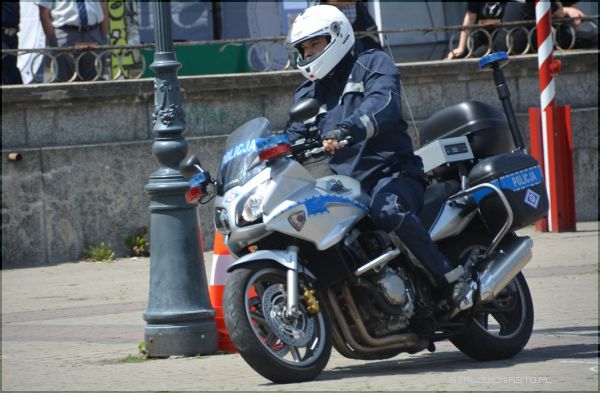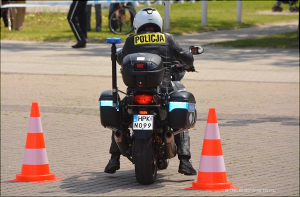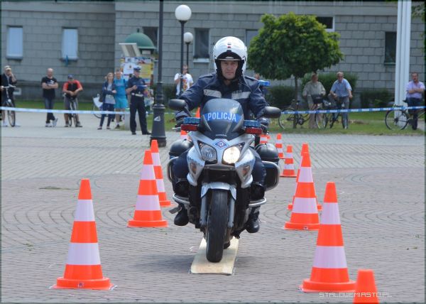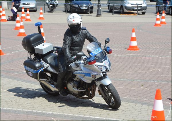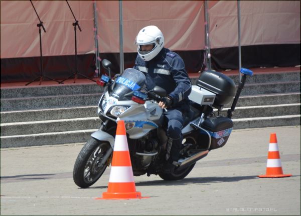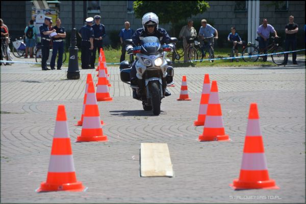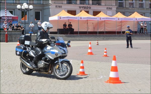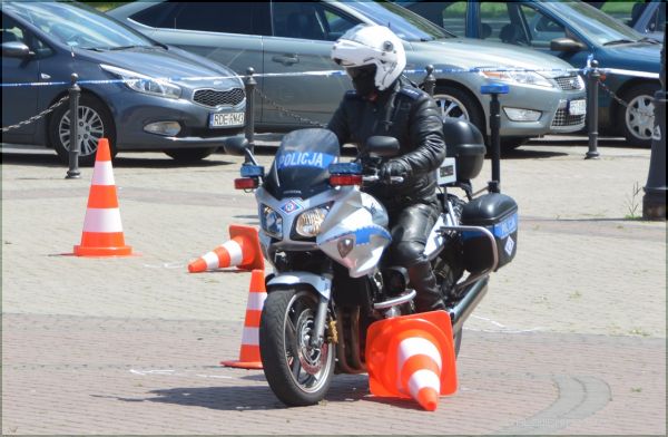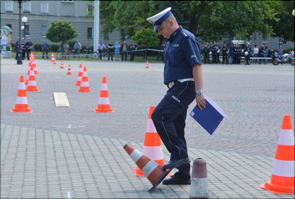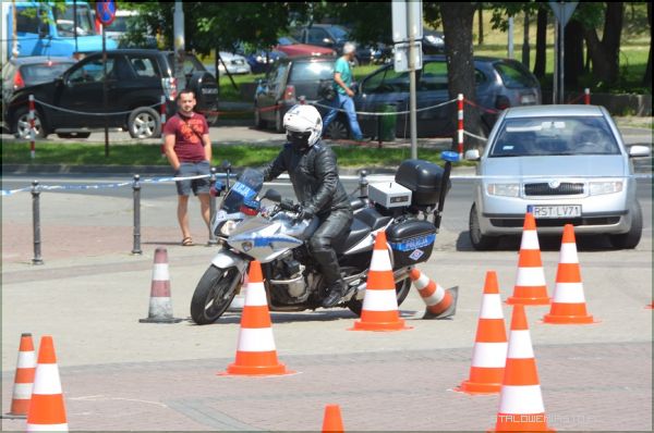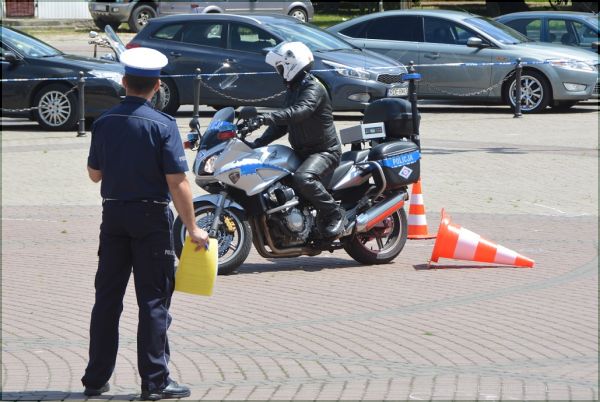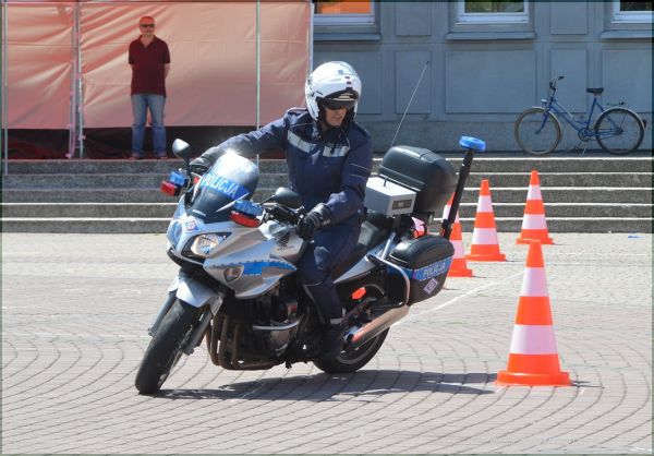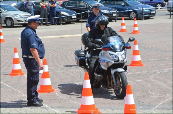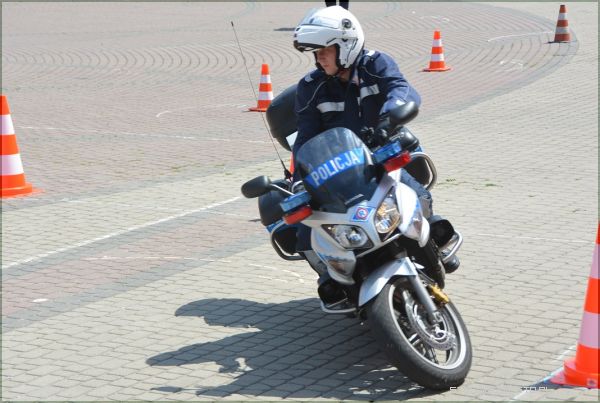 Po tej części zmagań przyszedł czas na jazdę motocyklem między przeszkodami. Ta konkurencja miała miejsce na Placu Piłsudskiego. Tam na motocyklach trzeba było przejechać między pachołkami, po okręgu, przez deskę. Przy tej konkurencji bezbłędnych przejazdów trzeba by szukać ze świecą. Wielokrotnie gasł silnik, pachołki „pchały się pod koła”, a droga gubiła się w gąszczu strzałek wyrysowanych na deptaku. Dwóch policjantów nie zapanowało nad maszyną przewracając się nawet podczas jazdy motocyklem.
