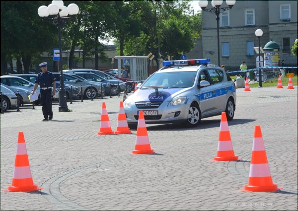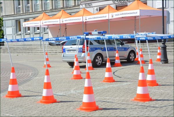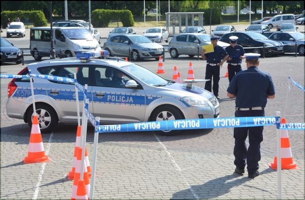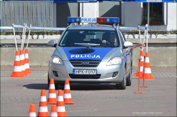Na początku, przed Miejskim Domem Kultury 21 policjantów z 21 powiatów podkarpackich próbowało bezpiecznie przewieść piłeczkę tenisową na masce wozu wykonując przy tym ewolucje między słupkami. Niejednemu niesforna piłka spadła, niejeden policjant radiowozem potrącił pachołek, niejeden potknął się biegnąć i wykonując zadanie. Policjant z Mielca doznał nawet kontuzji, ale mimo bólu ukończył konkurencję.