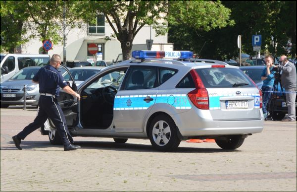 Zdaje mi się że plac z kostki obok Domu Kultury jest do chodzenia a nie do jeżdżenia po niej samochodami osobowymi z kogutem na dachu .