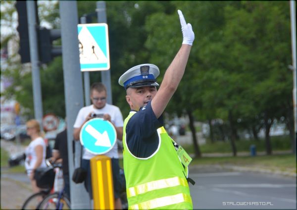 Druga tura zawodów odbyła się na skrzyżowaniu przy konkatedrze. O godzinie 12:30 wyłączono sygnalizację świetlną. Na środku skrzyżowania stawali po kolei poszczególni funkcjonariusze i kierowali ruchem. Przy każdym rogu skrzyżowania, przy pasach, stali sędziowie i oceniali zawodników. Pieszym pomagali w tym czasie inni policjanci. Wszystko przebiegało sprawnie i szybko mimo ogromnego natężenia ruchu o tej porze dnia. Wielu przechodniów przystawało i podziwiało zawodników. Tutaj trudno było wyłonić zwycięzców, gdyż każdy kierujący ruchem radził sobie świetnie z zadaniem. Wielu wygrywało już podobne zawody. O każdym z zawodników opowiadała podkomisarz Renata Bednarska. Policja zadbała o stosowne nagłośnienie widowiska.