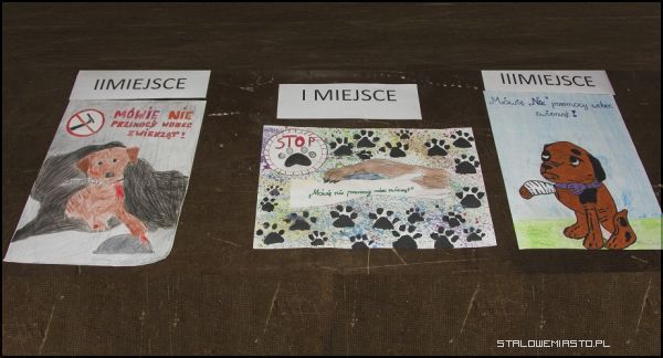 Podczas imprezy został rozstrzygnięty konkurs plastyczny, który organizowany jest corocznie przez PSP nr 1. Tym razem jego hasłem przewodnim było: „Mówię nie przemocy wobec zwierząt”. Choć to hasło konkursowe zmienia się co roku, zawsze chodzi o to samo: o problem przemocy wobec zwierząt i problem ich bezdomności. W tym roku do zmagań konkursowych przystąpili uczniowie klas IV-VI z trzech szkół: PSP nr 3, PSP nr 5 oraz PSP nr 1. Tym razem organizatorzy przyznali po dwa pierwsze, dwa drugie i dwa trzecie miejsca. Niełatwym zadaniem dla jury okazało się wybrać te najlepsze prace, bo wszystkie były naprawdę wyjątkowe, bardzo różnorodne, wykonane różnymi technikami. W skład komisji weszły osoby ze stowarzyszenia Psia Przystań. W Miejskim Domu Kultury można zobaczyć wystawę nagrodzonych prac. Jest też galeria zdjęć psiaków, które poszukują domów.