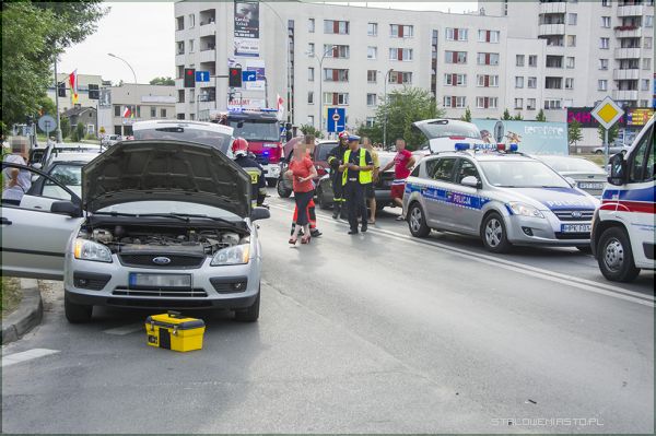 Na miejscu zdarzenia pracowali policjanci ze stalowowolskiej drogówki, strażacy uprzątnęli płyny, które wylały się z Forda Galaxy. Przez niespełna godzinę ruch na prawym pasie ulicy Popiełuszki był zablokowany.