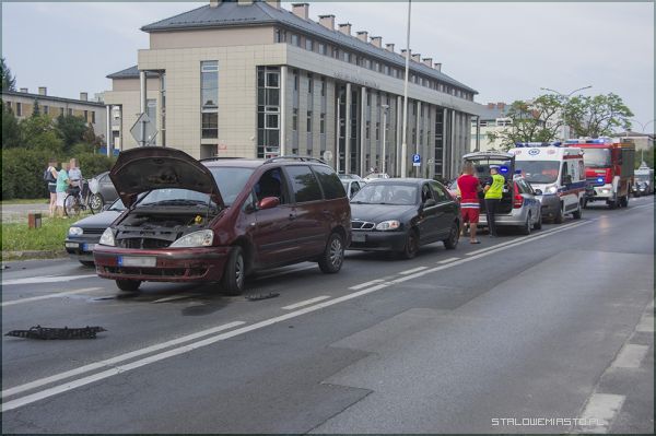 Kierowca Forda Galaxy, na stalowowolskich numerach rejestracyjnych, jechał ulicą Popiełuszki, w stronę przejazdu kolejowego. Drugim uczestnikiem zdarzenia była kobieta, jadąca Fordem Focusem na niżańskiej rejestracji. W jej aucie, z tyłu, w foteliku siedział siedmioletni chłopiec. Kierująca skręcała z uliczki z parkingu w Popiełuszki gdy doszło do zderzenia obu pojazdów. W wyniku kolizji lekko ranne zostało dziecko. W tył Focusa uderzył jeszcze samochód osobowy marki daewoo lanos (na stalowowolskich numerach rejestracyjnych).