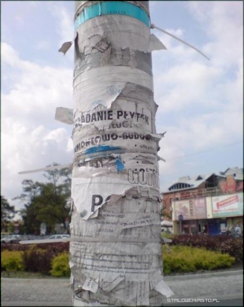 Idąc ulicą każdy z nas ogląda mnóstwo reklam, ogłoszeń, zawiadomień o sprzedaży, pożyczkach, kursach. Miejskie latarnie, słupki, siatki wprost oblepione są ogłoszeniami…