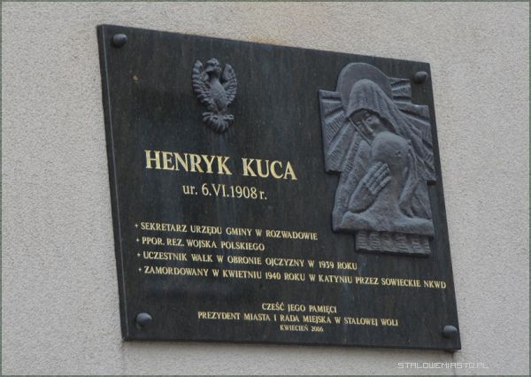 - Z mojej inicjatywy ta tablica została umieszczona na ścianie naszego Urzędu Miasta. Ppor. Henryk Kuca, absolwent Liceum w Nisku, jako oficer rezerwy został powołany w 1939 roku do obrony Ojczyzny, Polski. Jak wiadomo, 1 września 39 roku napadli na Polskę Niemcy, a 17 września Związek Sowiecki. Na wschodnich rubieżach przedwojennej Polski ppor. Henryk Kuca dostał się do niewoli sowieckiej. Był więziony w obozie w Kozielsku wraz z innymi oficerami polskimi. 5 marca 1940 roku władze partyjne Związku Sowieckiego podjęły decyzję o rozstrzelaniu prawie 25 tys. Polaków. Wśród nich było 15 tys. oficerów i policjantów. Byli to w większości oficerowie rezerwy, a więc nauczyciele, profesorowie akademiccy, lekarze, inżynierowie, prawnicy i urzędnicy, policjanci, nawet ci szeregowi z posterunków gminnych i miejskich, również ze Stalowej Woli. Ppor. Henryka Kucę rozstrzelano w Katyniu. Leży tam w dole, śpi snem wiecznym rozstrzelany tylko dlatego, że był wierny przysiędze Wojska Polskiego do końca- wspominał Zbigniew Paszkiewicz.