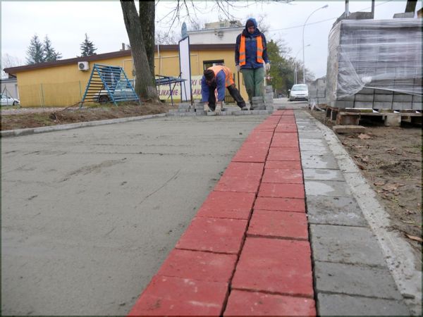 Nowa kostka brukowa zastąpiła już stare nierówne płyty na odcinku od Metalowca do Rupieciarni. Chodnik zostanie zmodernizowany prawie do samego wiaduktu, dokąd sięga droga miejska, dalsze odcinki należą do zarządu wojewódzkiego.