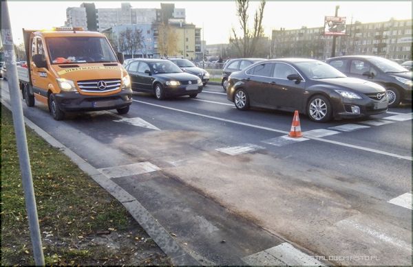 W centrum miasta, na skrzyżowaniu Al. Jana Pawła II i uliczek osiedlowych doszło do zdarzenia drogowego. Z dostawczaka wyciekły płyny...