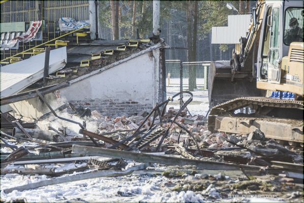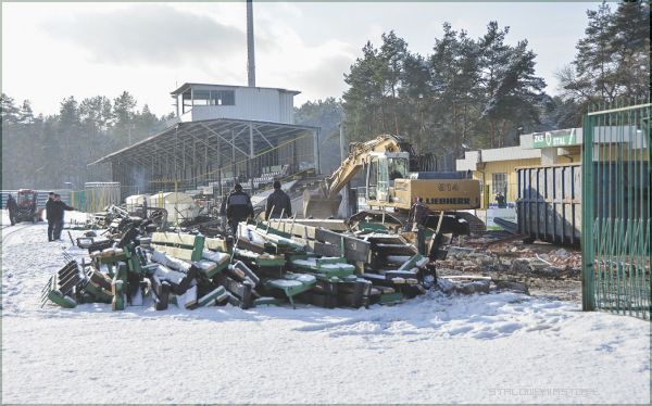 Tak jak zaplanowano, przystąpiono do rozbiórki starej trybuny. W tym miejscu powstanie zaplecze socjalno- sportowe…