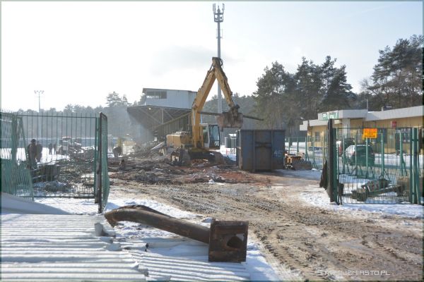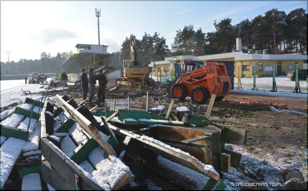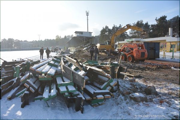 Na stadionie piłkarskim w Stalowej Woli ekipa robotników przystąpiła do rozbiórki starej, tzw. zachodniej trybuny. Niegdyś zasiadały na niej VIP-y. Jeśli warunki będą sprzyjające obiekt zostanie usunięty do 29 grudnia. Taki termin został wyznaczony umową. Mielecka firma zapowiedziała jednak, że upora się z pracami prawdopodobnie jeszcze przed świętami Bożego Narodzenia. Nie ma w tym temacie jednak pośpiechu, bo prace budowlane w tym miejscu nie nastąpią od razu.