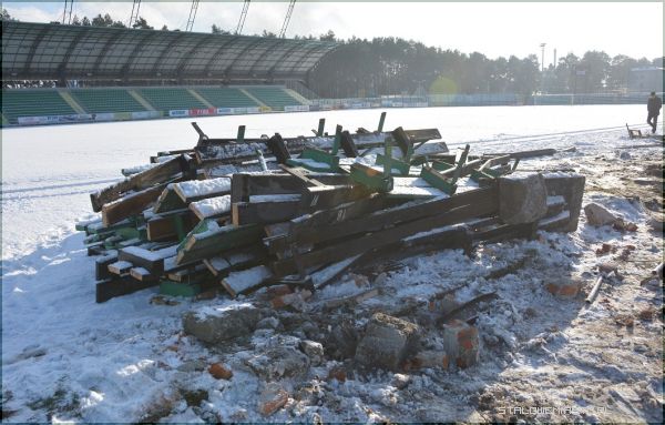 Mam bardzo dobrą wiadomość dla prawdziwych kibiców naszej kochanej STALÓWKI, bylem tam wczoraj i roboty pięknie idą do przodu już nie ma trybuny honorowej, została rozebrana. Ktoś się pytał o przetarg na rozbiórkę tej trybuny, więc prawda jest taka najtańsza firma z naszego terenu która wystartowała do przetargu dała cenę zaporową 30 tysięcy więcej niż ta firma z MIELCA. Po za tym nikt nie zabierze sobie tego złomu bo ten złom należy do nas i my na tym zarobimy. Do fikoł, ty naprawdę masz fikoła w pustej głowie dziś na mecze przychodzi 1000 kibiców a po awansie na razie do 1 ligi będzie na tej trybunie 5 tysięcy kibiców. A w dalszej przyszłości ten stadion na każdym meczu będzie pełny, ja to każdemu gwarantuję. Najbardziej podoba mi się komentarz lesława'' zwięźle krótko i na temat, proszę o więcej takich mądrych komentarzy.