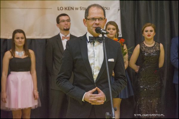 - Po raz kolejny, w tej na co dzień nazywanej halą sportową, a dzisiaj wielką salą balową spotykamy się w tą magiczną, niezwykłą, studniówkową noc. Jest rzeczą zwykłą, że w naszej szkole prawie od zawsze studniówka odbywa się zawsze tutaj, w murach szkoły, którą tak dobrze znacie. To jedyna noc w waszym życiu, podczas której sami, dobrowolnie spędzicie tutaj całą noc. Na co dzień raczej myślicie o tym, żeby w szkole spędzać nieco mniej czasu niż jest to wam przypisane w podziale godzin. Samo to, że chcecie tę noc spędzić tutaj, jest niezwykłe. W Stalowej Woli to jedyne miejsce, gdzie odbywa się studniówka, a myślę, że i w Polsce coraz trudniej znaleźć taką szkołę. Dziękuję wam za to i dziękuję rodzicom- mówił Mariusz Potasz, dyrektor LO im. KEN.
