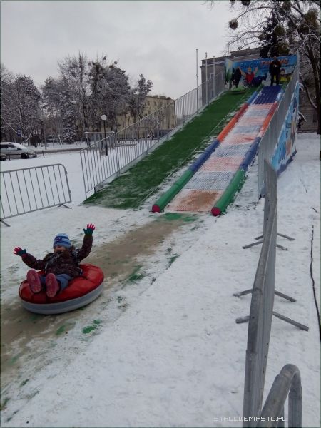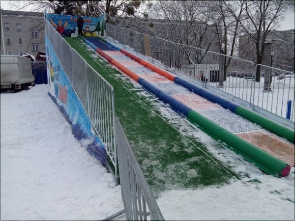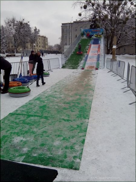 Przed Miejskim Domem Kultury stanęła sztuczna, sześciometrowa góra. Szerokość zjazdowa toru wynosi 4 metry, a jechać nim w dół można przez 25 metrów. Później jeszcze przez kilka metrów, siłą wyrzutu podróżuje się po sztucznej trawie. Taka atrakcja postoi do końca ferii zimowych i patrząc na prognozę pogody, powinna być pokryta śniegiem w całości.