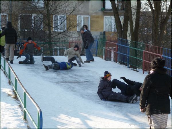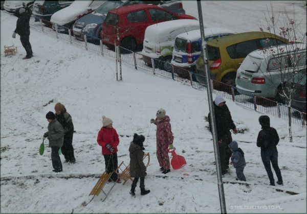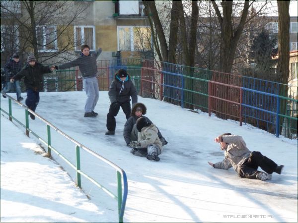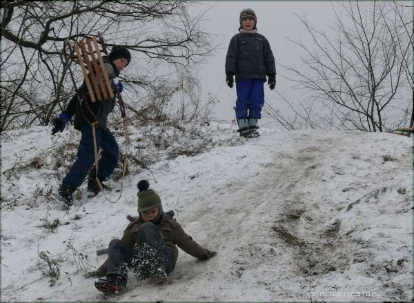Wszędzie tam, gdzie zimą pada śnieg dzieciaki pędzą na górki ciągnąc za sobą sanki. Każda, nawet najmniejsza skarpa jest wyślizgana i wyjeżdżona płozami przez miłośników białego szaleństwa. Podczas jazdy co rusz zdarza się, że ktoś fiknie koziołka, spadnie z sanek, nabije sobie guza. Na szczęście niezwykle rzadko zdarzają się poważniejsze wypadki. Dzieci bawią się znakomicie i na ogół pod okiem dorosłych spędzają czas beztrosko.
