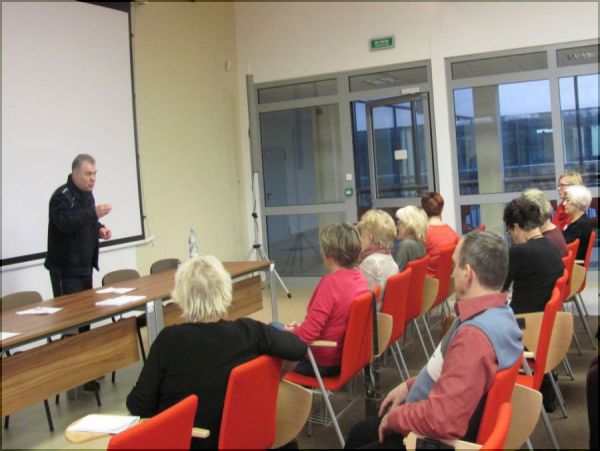 Policjanci spotkali się z grupą seniorów ze Stowarzyszenia Uniwersyteckie Srebrne Lata. Podczas spotkania aspirant sztabowy Andrzej Walczyna przedstawił zagrożenia z jakimi mogą spotkać się starsze osoby. Seniorzy dowiedzieli się co to jest oszustwo „na wnuczka” i "na policjanta" jak bardzo jest niebezpieczne i w jaki sposób się go ustrzec. Policjant przedstawił także, dlaczego nie wolno wpuszczać do domu obcych oraz dlaczego należy potwierdzać wiarygodność osób podających się za monterów, opiekunów społecznych, czy urzędników oferujących pomoc finansową.