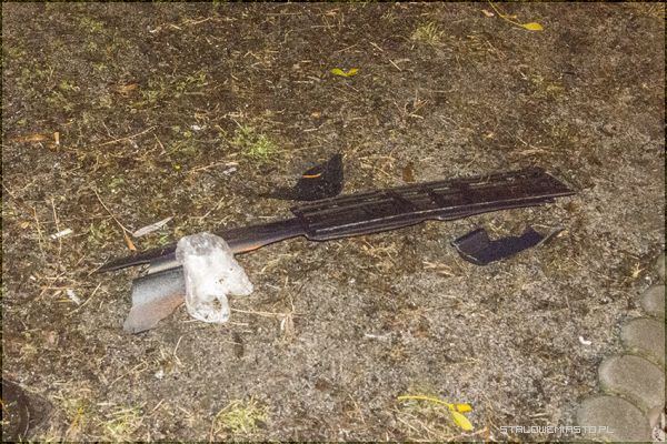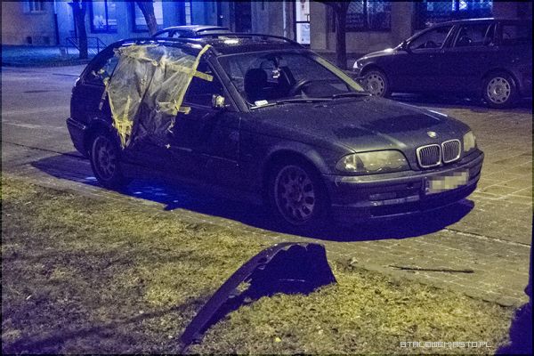 Na miejsce przyjechał patrol policji. Przewrócony pojazd podniesiono wspólnymi siłami. W zdarzeniu na szczęście nikt nie ucierpiał, nie było konieczności wzywania pogotowia. Ulica Narutowicza, na której doszło do zdarzenia to droga międzyblokowa. Wzdłuż niej parkowane są samochody okolicznych mieszkańców i klientów sklepików. Po kolizji na ziemi zostało mnóstwo szkieł, fragmentów plastikowych części samochodów. Z jednego z aut odpadła nawet tablica rejestracyjna. BMW i Peugeot „straciły” szyby. Z przewróconego samochody wysypały się różne przedmioty, między innymi zakupy.