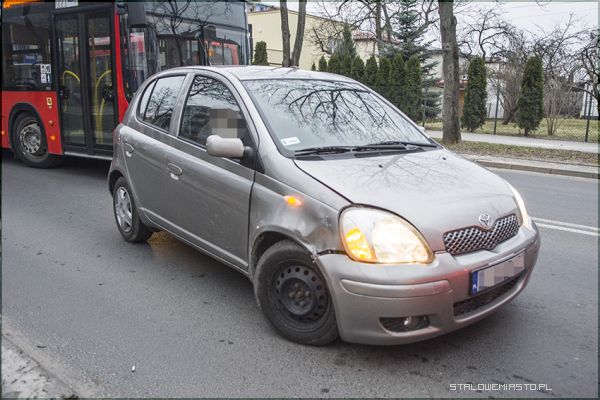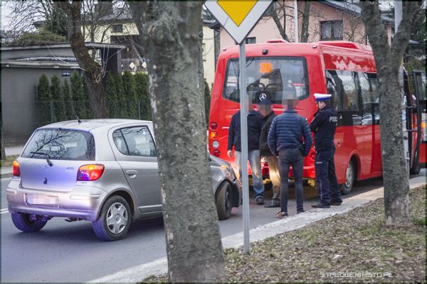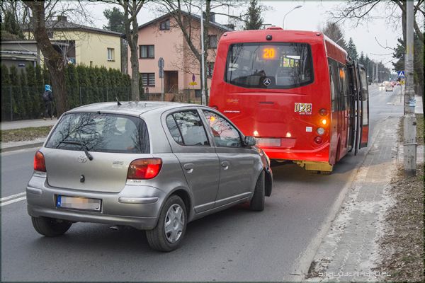 Ulicą Żwirki i Wigury, w stronę szpitala jechał kierowca autobusu miejskiego. Pojazd zatrzymał na przystanku. W miejscu tym nie ma zatoczki, kierujący więc stanął w pasie ulicy. Tuż za nim podążał toyotą yaris, na janowskich numerach rejestracyjnych, inny uczestnik ruchu. Nie zachowując środków ostrożności nie zauważył hamującego autobusu i wjechał w niego powodując kolizję.