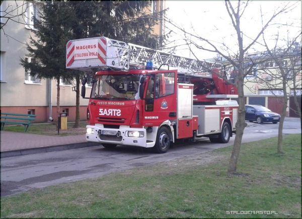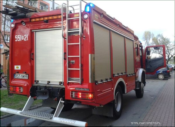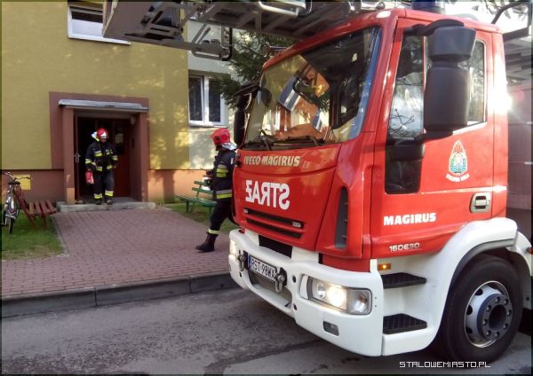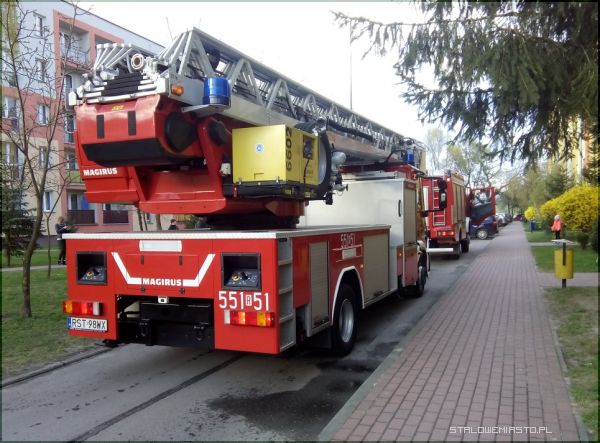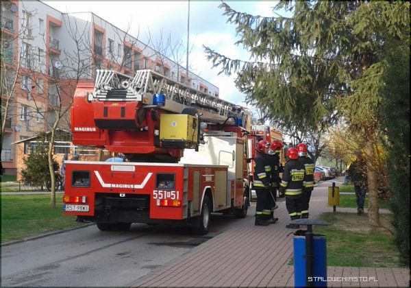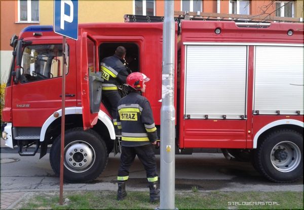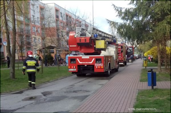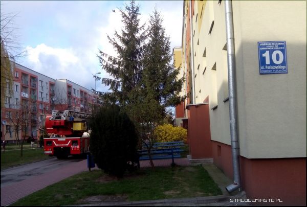 Trzy zastępy straży pożarnej przyjechały na sygnale przed blok Poniatowskiego 10. Sąsiedzi wezwali strażaków bo zaniepokoił ich smród spalenizny, który czuć było nawet przed blokiem.