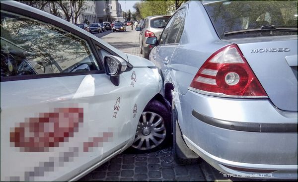 Jeden kierowca wyjeżdżał z uliczki osiedlowej, dwóch miało zaparkowane swoje pojazdy na ulicy Narutowicza, nieopodal salonu optycznego. Podczas manewru kierujący Fordem Fiestą (auto na numerach z Łowicza) uderzył w bok zaparkowanego samochodu (Ford Mondeo na stalowowolskich numerach) . Przy okazji uszkodzony został jeszcze trzeci pojazd, nissan (również na rejestracji lokalnej).