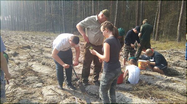W ramach akcji „1000 drzew na minutę", Nadleśnictwo Rozwadów zorganizowało sadzenie lasu z udziałem młodzieży szkolnej – uczniów Centrum Kształcenia Ustawicznego w Stalowej Woli oraz harcerzy z 54 Stalowowolskiej Drużyny im Bronisława Kochana, Lasowiackiego Hufca ZHP. Odbyło się ono w leśnictwie Ciemny Kąt, oddział 168, na powierzchni pozrębowej przygotowanej do odnowienia. Pod nadzorem Służby Leśnej nadleśnictwa młodzież zapoznała się z techniką sadzenia tzw. metodą pod kostur. Wysadzono około 1000 sztuk jednoletniej sosny na powierzchni 10 arów. Po zakończeniu pracy uczestnicy posilili się smakowitą grochówką. Całą akcję zakończył przemarsz młodzieży z miejsca sadzenia do siedziby nadleśnictwa, w trakcie którego leśnicy odpowiadali na pytania młodzieży dotyczące różnych aspektów pracy w lesie.