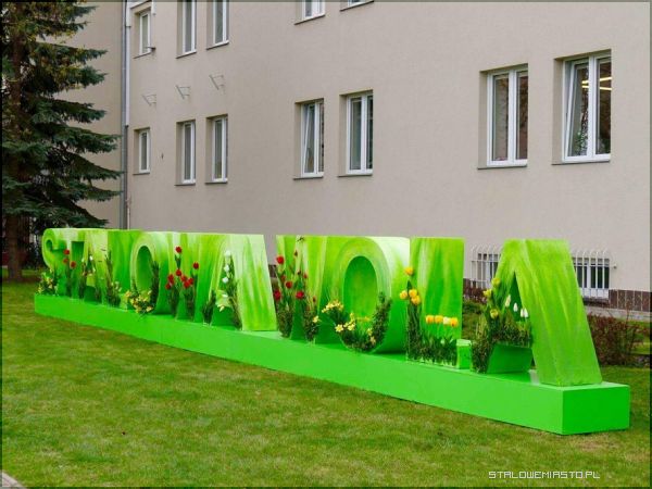 Pomalowane na kojarzący się z wiosną radosny zielony kolor, ozdobione kwiatami i bukszpanem litery stanęły dzisiaj, 13 kwietnia przed budynkiem Urzędu Miasta w Stalowej Woli przy ul. Wolności 7. Styrodurowe litery tworzące napis Stalowa Wola umieszczone zostały na specjalnie zrobionym podeście, również pokrytym zielonym kolorem.