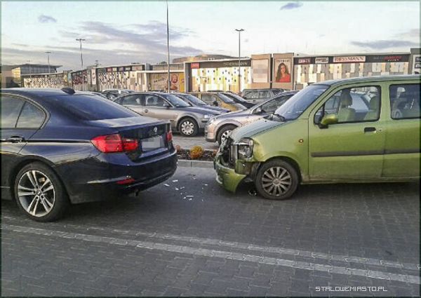 To ze parking jest zle oznakowany nie robi z Pani w BMW winnej kolizji. Panu jak zalezy na kasie zeby auto naprawic niech sie Pan sadzi z wlascicielem drogi - vivo.