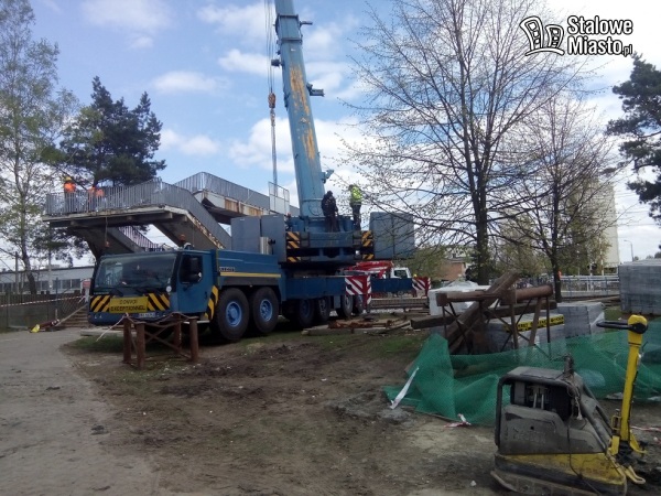 Ale to dobra wiadomość, bo wszyscy już mieli dość wspinania się wysoko po schodach, zwłaszcza ci, którzy wybrali się na zakupy na targ i z pełnymi, ciężkimi siatami powracali do domów „za torami”. Teraz przedostać z jednego na drugi kraniec miasta można korzystając z prowizorycznego przejścia poziomego ulokowanego na szynach. Obecnie zwyżka „ściąga” elementy betonowe i metalowe starej kładki. To zadanie trudne, ponieważ trzeba uważać, by nie uszkodzić szyn i przejeżdżających składów.